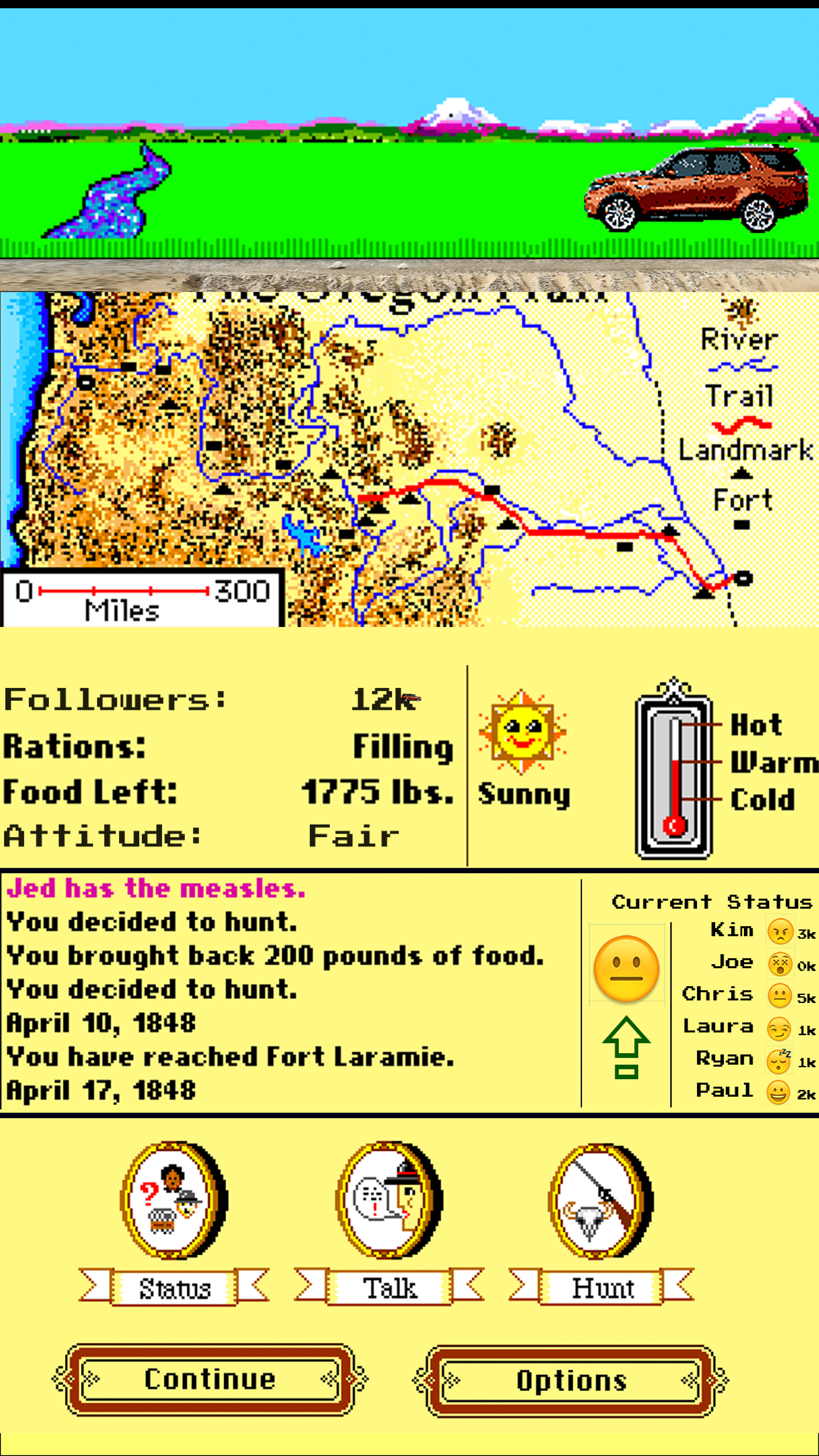 Create a tentpole moment leveraging the nostalgia and affinity our target audience has for the Oregon Trail. By re-creating a game that is a cultural touchstone for a generation, with an experience that utilizes the new Discovery as the literal vehicle to both excite, engage and inform the user. Housed primary within Meta's new gaming platform and leveraging their expansive userbase and adtech, would create a frictionless consumer journey from awareness through conversation.